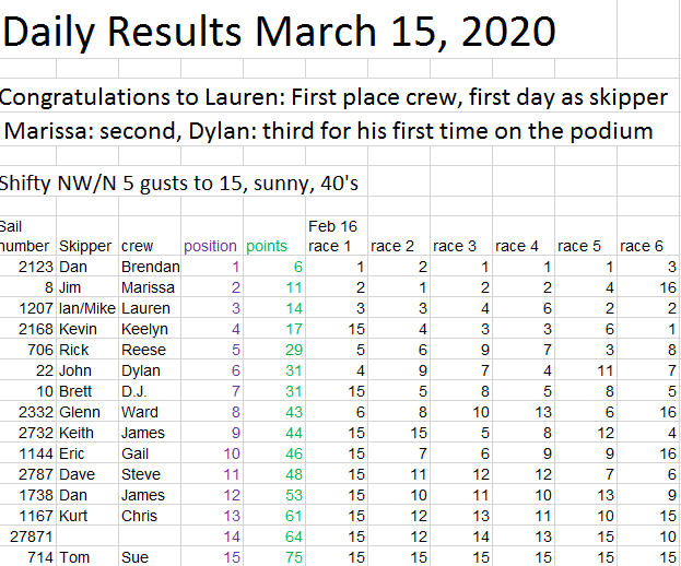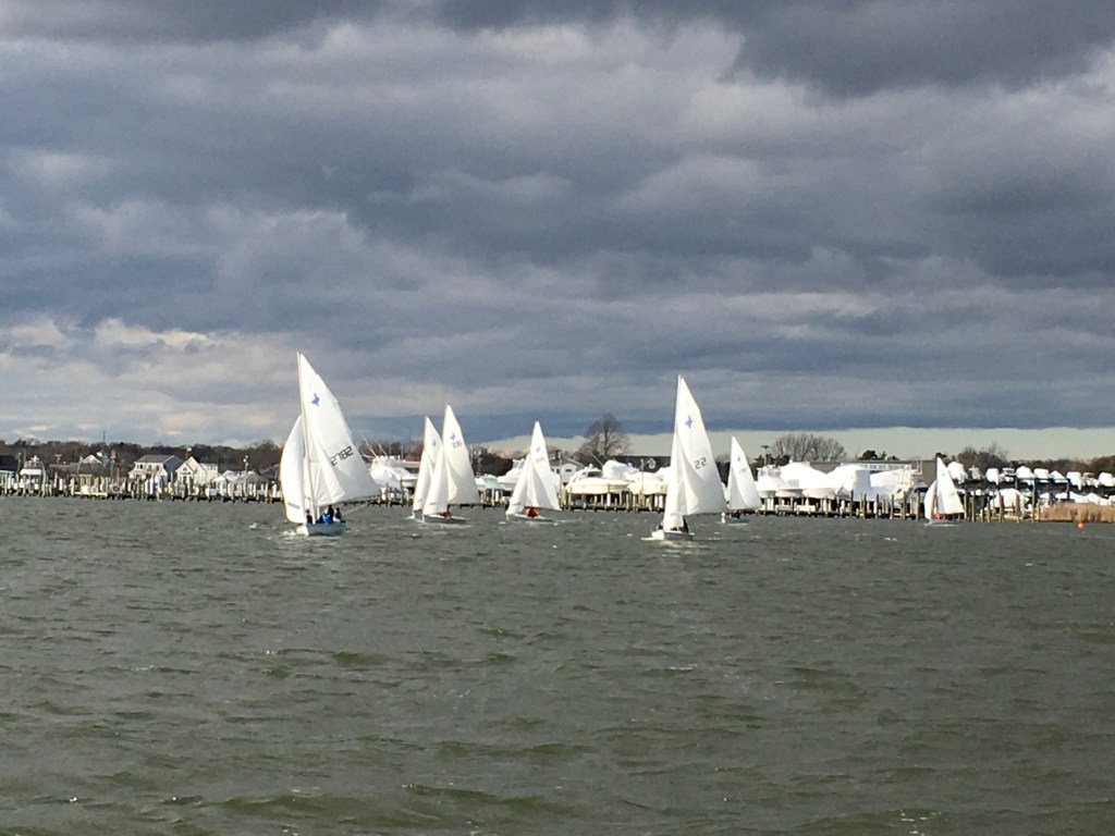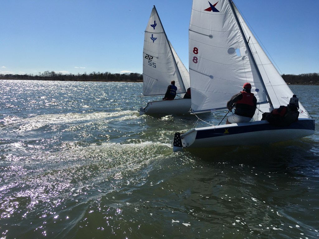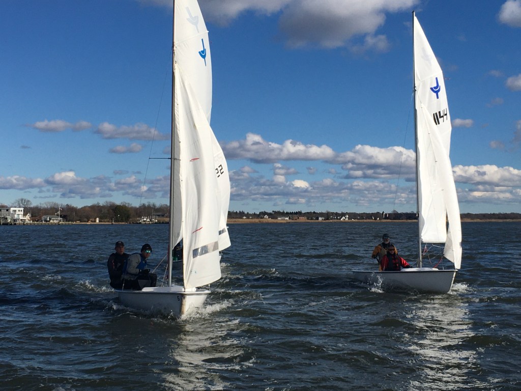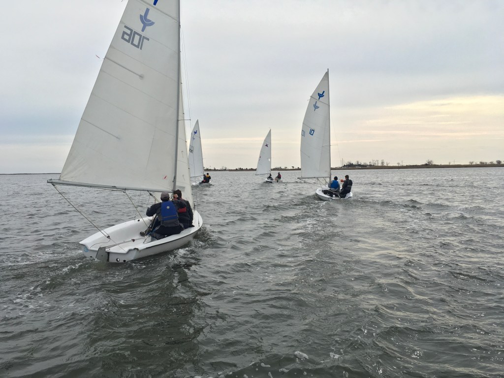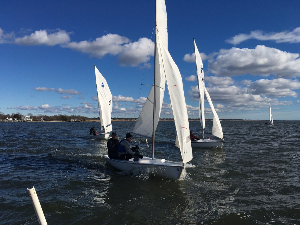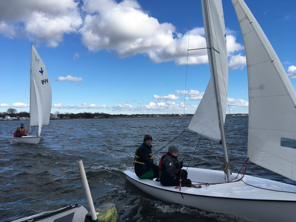 Once again we got a stellar window of, perfect sailing weather, sunshine, 40 degrees and NNW wind at 8-12. We got three races in for the first race of the year and the decade before the winds kicked way up!