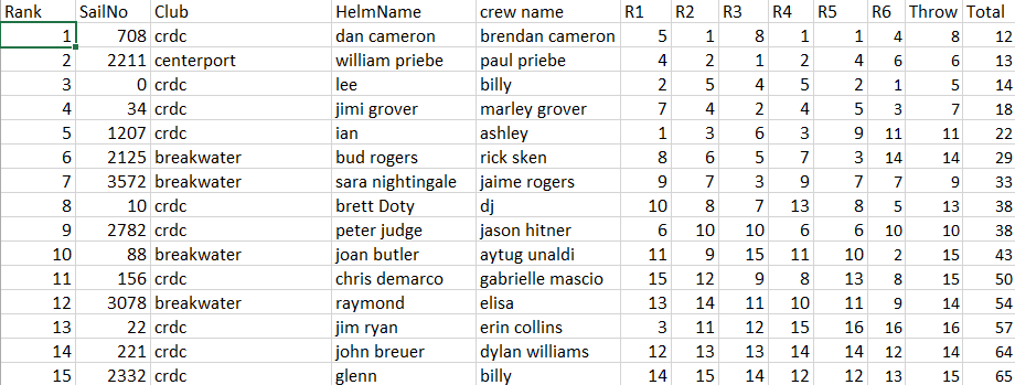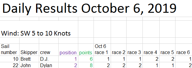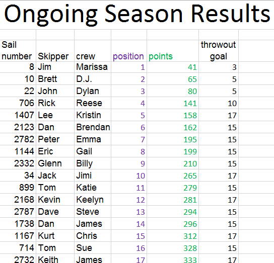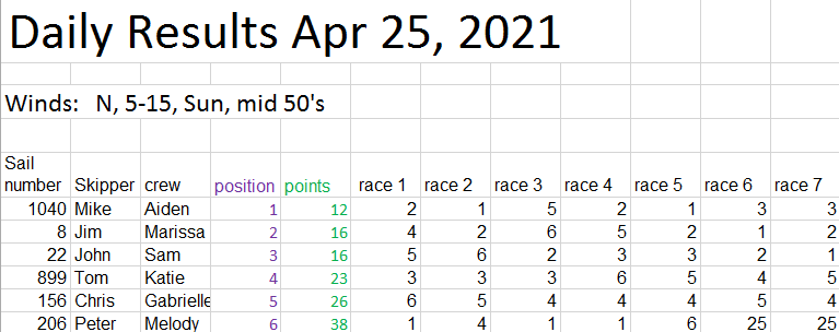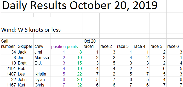 For Daily Results: Low Point System, One Throwout with Four or More Races